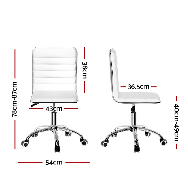 Bring a touch of contemporary living to your home or office with the Artiss Office Chair. With sleek, iconic styling, this chair is upholstered in waterproof PU leather, adding sophistication and class. The 360-degree rotatable, soft-padded seat ensures comfort, while height adjustment and a low-back design provide optimal posture support. The sturdy metal base with five castor wheels allows for easy movement. Effortlessly assemble and maintain this chair, perfect for any work environment. Comes with a 1-year warranty.