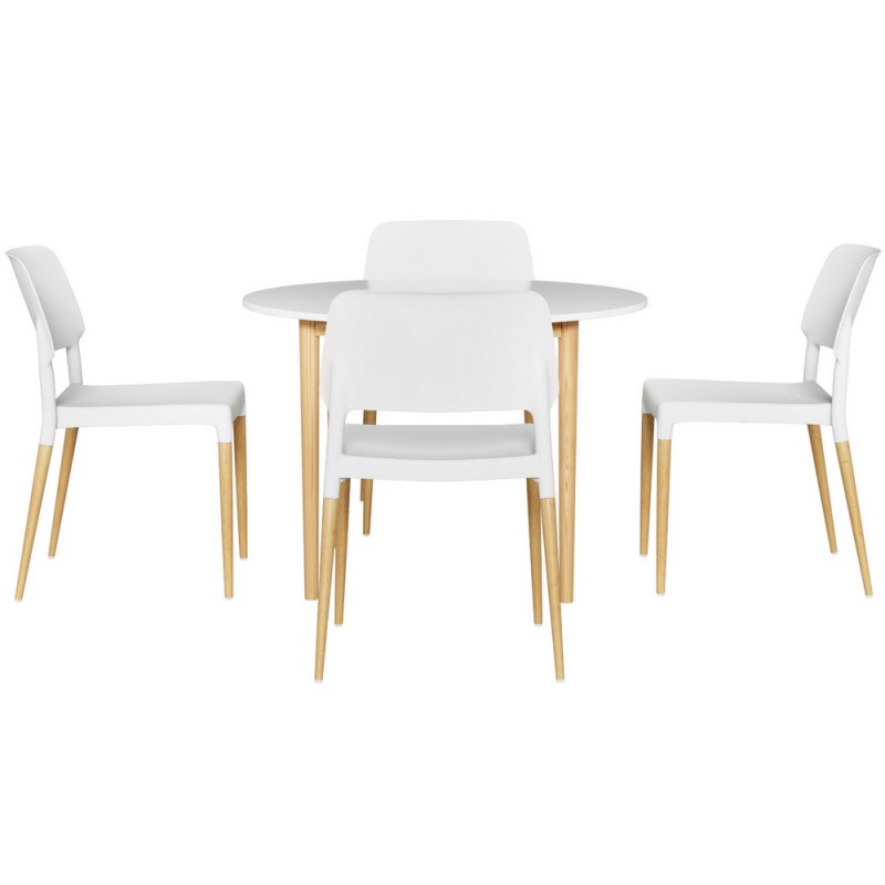 Elevate your dining space with the Artiss Demi Dining Table and 4 Chairs Set. Designed for modern elegance, this set features a sturdy round table with a smooth white MDF tabletop and solid pine legs, comfortably seating 4 to 6 people. The matching chairs offer a comfortable PP seat and solid beech wood legs for lasting durability. Perfect for formal dining, kitchen, or café settings, the set is easy to assemble, stack, and store. Add a touch of Nordic sophistication and enjoy a 1-year warranty for peace of mind.
