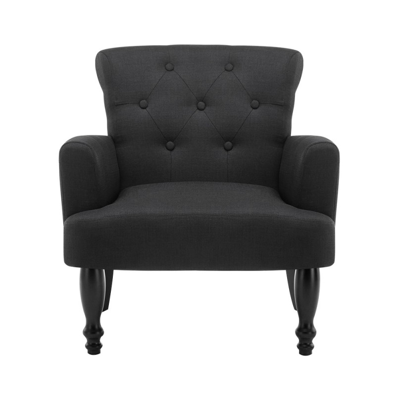 Introducing the Artiss Armchair Wingback Charcoal Lothair, a masterpiece of classic elegance and modern comfort. This noble black wing armchair features classic tufted buttoning, wide armrests, and soft tones, perfect for creating an inviting space in your home. Whether it's your reading nook or music corner, this armchair promises a personal haven. Crafted with delicate linen fabric and a 22cm thick cushioned seat, every detail is designed for relaxation. Complete your home with more from Artiss!