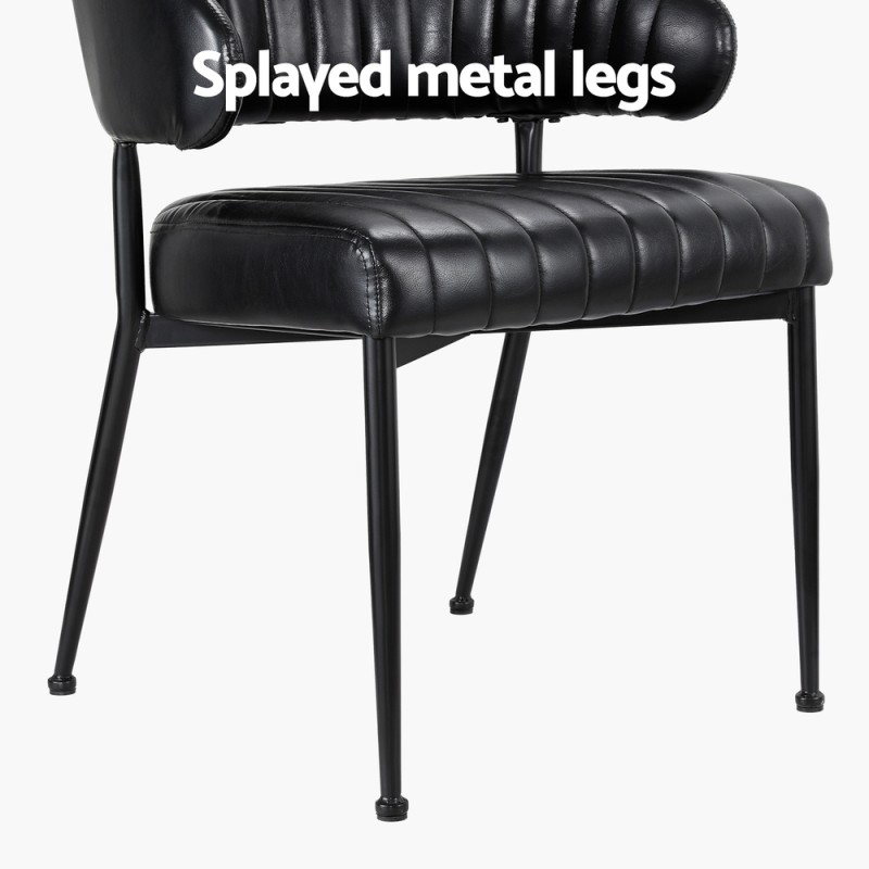 Elevate your dining experience with the Artiss Yolanda Dining Chairs, a set of 2 that perfectly blends style and comfort. Crafted with a sturdy metal frame and plush PU leather upholstery, these chairs boast a timeless design that makes them a statement piece for any dining room. With durable construction and elegant details, they promise to enhance your dining space while offering long-lasting support. The chairs feature padded seating and floor protectors, ensuring both comfort and care for your floors. Assembly required.