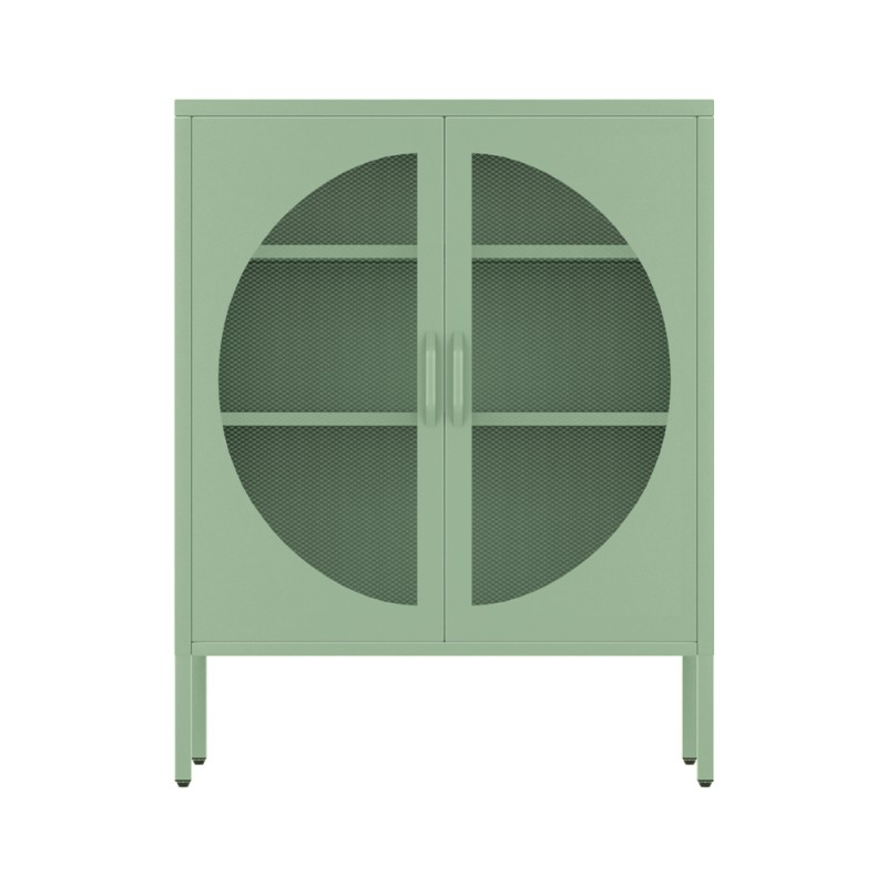 Revamp your space with the ArtissIn Elsa Buffet Sideboard in ELSA Green, a blend of modern functionality and timeless design. Crafted from high-quality cold-rolled steel, it features two adjustable shelves and stylish mesh doors for easy visibility. With a 40kg weight capacity on the top and base, and 20kg per shelf, it offers ample storage. Easy to clean and assemble, it includes adjustable feet pads and wall attachment points for stability. Elevate your home with this contemporary piece today.