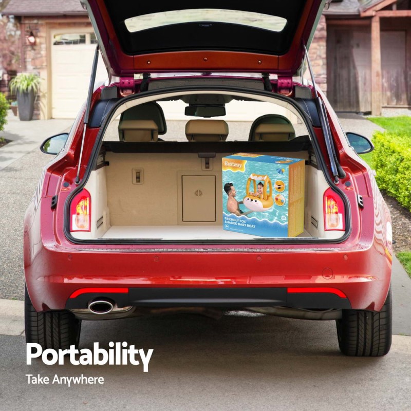 Make a splash this summer with the Bestway Kids Inflatable Fox Swim Float! This adorable float features a playful fox design and vibrant balls that entertain as they move and jingle. Crafted from durable PVC, it includes a sunshade with velcro for easy access and protection. Perfect for children aged 3 and up, this float is easy to assemble and inflates quickly. With a max load capacity of 45kg, it's the ultimate pool companion for your little adventurer. Get ready for endless aquatic fun!
