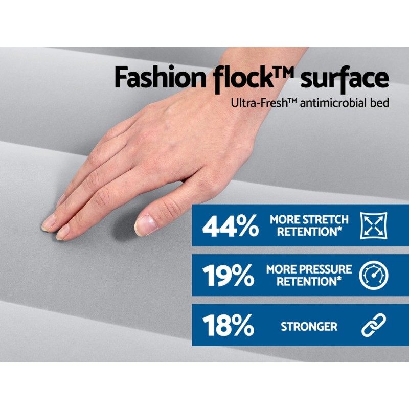 Discover unparalleled comfort and convenience with the Bestway Mattress Air Bed Single Size. Effortlessly inflate in under 180 seconds with the built-in pump and enjoy the durable Tritech™ construction and soft flocked surface for a restful sleep. Perfect for camping or home use, this air bed features Ultra-Fresh™ antimicrobial treatment to ensure hygiene. Easy to transport with an included carry bag, it's your go-to solution for flexible sleeping arrangements, indoors or outdoors.