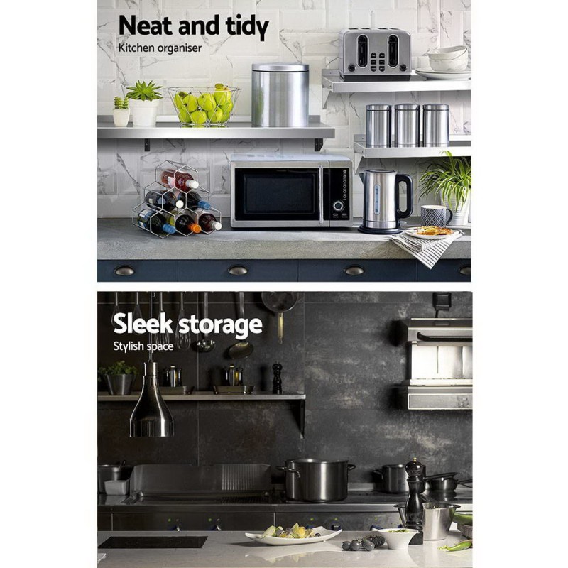 Maximise your kitchen space with the Cefito 1800mm Stainless Steel Kitchen Wall Shelf Mounted Rack. Crafted from robust 430 stainless steel, this wall shelf is not only rust-proof but also easy to clean, making it an ideal addition to any kitchen or room needing extra shelving. Its heavy-duty design boasts a high weight capacity, accommodating up to 200kg on concrete walls and 60kg on wood walls. The sleek, silver shelf is wide enough to store or display a variety of items beyond kitchen essentials. Installation is hassle-free with the included manual and two sturdy support brackets.