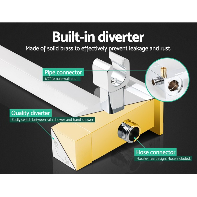 Elevate your bathroom with the Cefito 8'' Rain Shower Head Set. Enjoy the luxury of a fixed 8" rainfall shower head for a soothing experience and a handheld shower head with three spray patterns for targeted cleaning. Crafted with a solid brass body and finished in multi-layer premium chrome, this set ensures durability and a modern look. The built-in brass diverter prevents leaks, while the mixer delivers smooth temperature control with a drip-free ceramic cartridge. A 1.5m stainless steel hose adds flexibility, making every shower refreshing and easy.