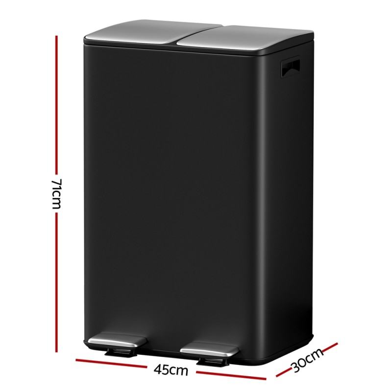 Introducing the Cefito Pedal Bin, a modern waste management solution crafted from durable carbon steel. This sleek bin features anti-rust, waterproof properties and a stainless pedal for easy, hygienic use. Its soft closing mechanism ensures a quiet experience. The dual-compartment design, with each bin offering a 30L capacity, allows for effortless garbage sorting. The easy-to-clean, contemporary rectangular shape makes it a stylish addition to any space. Upgrade your waste disposal system with Cefito today.