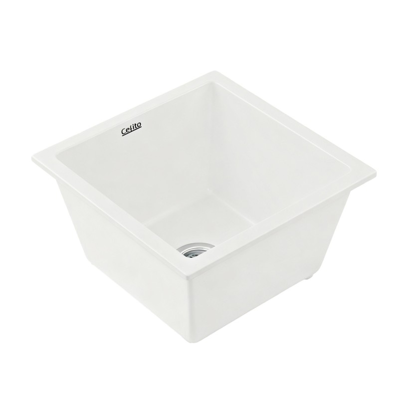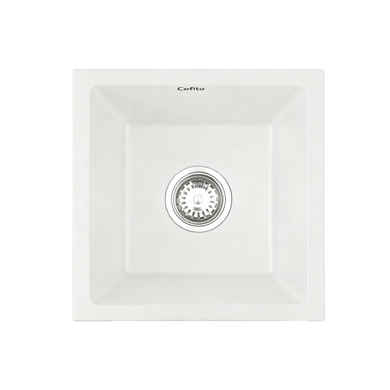 Introducing the Cefito Kitchen Sink, a perfect blend of elegance and durability for your culinary space. Measuring 38x38cm, this single bowl granite stone sink in white boasts a robust construction with 80% granite, ensuring exceptional impact and wear resistance. Ideal for heavy-duty kitchen tasks, it's scratch-resistant and can withstand temperatures up to 280°C/536°F. The non-porous, food-grade surface resists oil penetration and promotes hygiene. Available in both single and double bowl options, it fits seamlessly into any kitchen style with its versatile mounting options and modern R15 round corners.