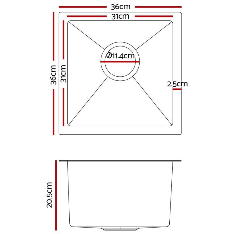 Elevate your kitchen with the Cefito Kitchen Sink 36x36cm Stainless Steel Nano Basin. Expertly crafted from premium 304 food-grade stainless steel, this sink promises durability and hygiene with its scratch-resistant and bacteria-free surface. The satin-coated finish, R10 rounded corners, and innovative X-flume design ensure practicality and elegance. Perfect for any installation style, this sink combines functionality with a modern aesthetic, making it an essential addition to your kitchen.