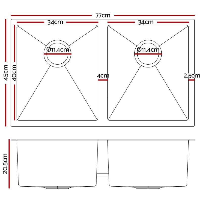 Upgrade your kitchen with the Cefito Kitchen Sink, a masterpiece of quality and craftsmanship. Made from premium 304 stainless steel, this double bowl sink boasts a nano-coated surface that is scratch-proof, oil-proof, and bacteria-free. Its R10 rounded corners and X-flume design ensure easy cleaning and efficient drainage. With sound-deadening pads and eco-friendly features, this sink is suitable for any installation style, making it a perfect fit for your modern kitchen.