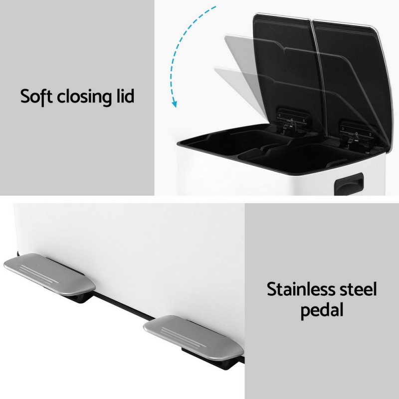 Introducing the Cefito Pedal Bin, a sleek and modern solution for your waste management needs. Crafted from sturdy carbon steel, this bin boasts a contemporary design that's built to last. Its anti-rust and waterproof properties ensure long-lasting durability, while the stainless steel pedal allows for easy, hygienic operation. The soft closing mechanism provides a quiet and seamless experience. With a modern rectangular shape and dual-compartment design, it simplifies garbage sorting. Each compartment offers a generous 20L capacity, totalling 40L for all your disposal needs. Durable and easy to clean, the Cefito Pedal Bin is the upgrade your home deserves.