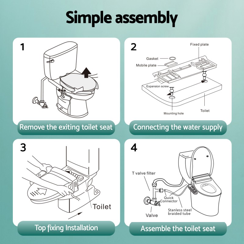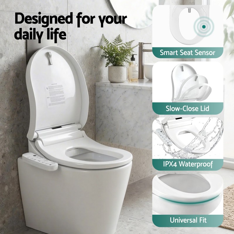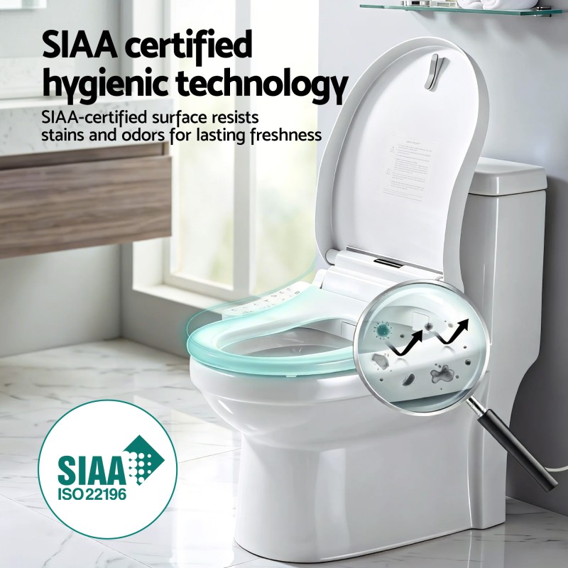 Upgrade your bathroom with the Cefito Smart Electric Bidet Toilet Seat D-Shape offering an SIAA approved hygienic surface, WaterMark and SAA certification, and a self‑cleaning stainless steel nozzle. Enjoy personalised comfort via adjustable water temperature pressure and position plus a 4‑level heated seat warm air dryer LED night light and automatic deodorisation for a cleaner fresher hands free experience that fits standard Australian toilets and is simple to install.