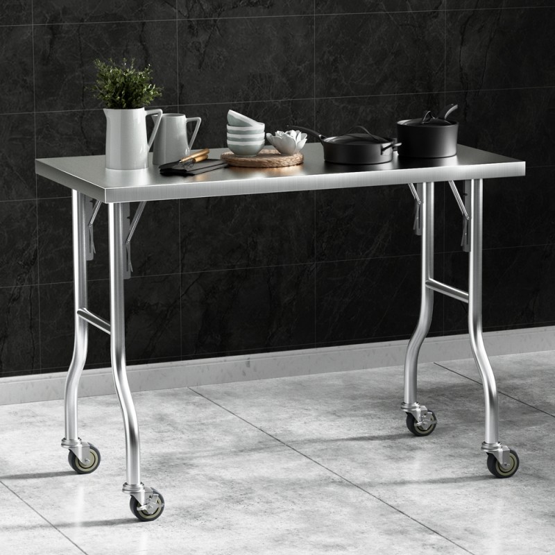 Introducing the Cefito Stainless Steel Kitchen Bench with Wheels—your versatile kitchen companion designed for flexibility and durability. Crafted from 430 graded stainless steel, this robust workbench offers a practical solution for extra storage, utility, and workspace. With foldable legs and lockable castors, it combines stability with mobility, ensuring effortless movement and secure positioning. Perfect for any kitchen, business, or home, it promises easy assembly and long-lasting performance. Order now for doorstep delivery!
