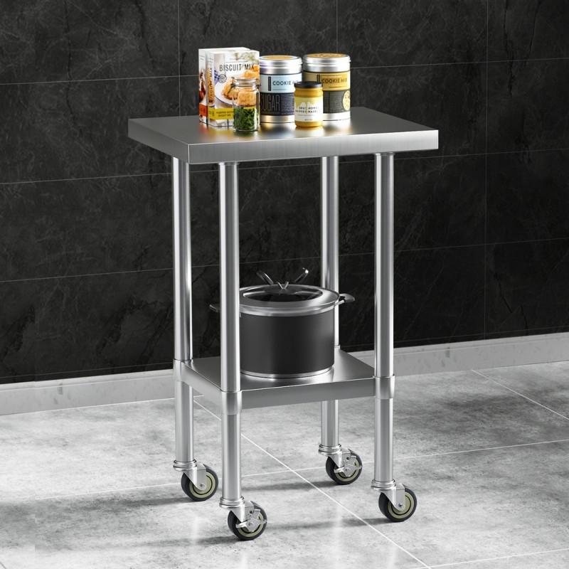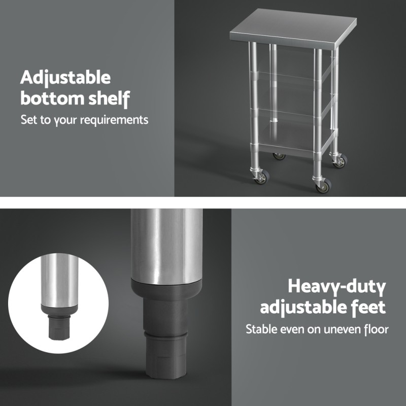 Discover unmatched convenience with the Cefito Stainless Steel Kitchen Bench, designed to enhance your kitchen's functionality. Crafted from durable 430 graded stainless steel, this bench offers a perfect blend of style and resilience. Its adjustable shelf provides versatile storage options, while the heavy-duty castor wheels ensure effortless mobility. With lockable castors for added stability and easy flat-pack assembly, it's ideal for food preparation, display, or any workspace requiring flexibility.