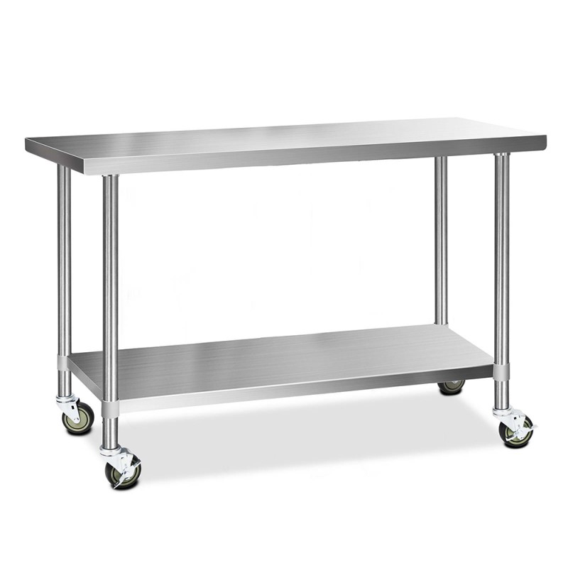 Introducing the Cefito 1524x610mm Stainless Steel Kitchen Bench with Wheels, the ultimate solution for versatile kitchen utility. Crafted from durable 430 graded stainless steel, this bench ensures longevity and resilience. With lockable castors, adjustable shelving, and a 200kg capacity, it provides exceptional stability and convenience. Perfect for food prep and display, it moves effortlessly on rubber wheels and adapts to uneven floors. Easy to assemble and clean, it's ideal for home, business, or public spaces. Delivered flat-packed for portability, it’s a must-have for any kitchen.