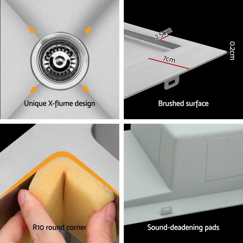 Explore the elegance and durability of the Cefito Kitchen Sink Basin. Crafted from robust 304 stainless steel, this versatile sink is perfect for any kitchen style with its luxurious satin finish. Designed for quiet, efficient use, it features anti-condensation, mould-resistant paint, and sound-deadening pads. The R10 rounded corners ensure easy cleaning, while the X-flume design guarantees swift drainage. Suitable for under-mount, flush-mount, and drop-in installation, it promises high-quality craftsmanship backed by a 5-year warranty.