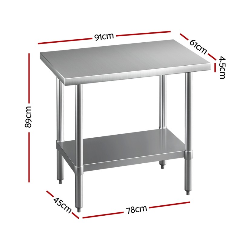 The Cefito Stainless Steel Kitchen Bench is an elegant and durable addition to any kitchen, café, or restaurant. Crafted from commercial-grade 430 stainless steel, this workbench is designed to withstand heavy use while maintaining its sleek appearance. With adjustable under-shelving and bullet feet, it offers versatile storage and stability on uneven floors. Easy to assemble and clean, this workbench is perfect for food preparation and display, making it a practical choice for both professional and home environments.