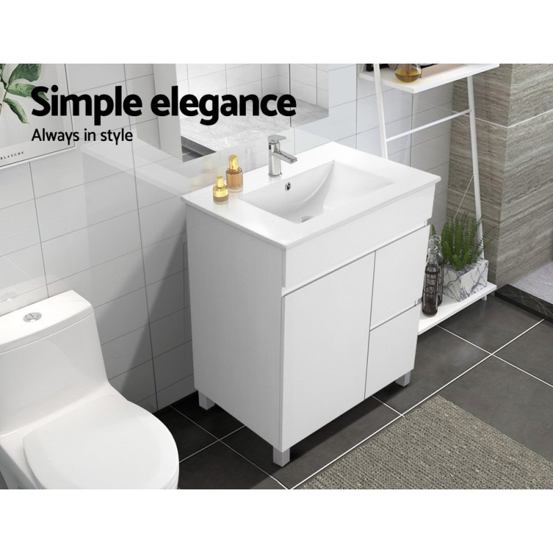 Add a touch of modernity to your bathroom with the Cefito Vanity Unit. Crafted from durable MDF board with a sleek high-gloss finish, this unit offers ample storage with a single door cupboard and two drawers. The crystalline ceramic basin is scratch, leak, and bacteria-resistant. Featuring eco-friendly materials, soft edges, and premium DTC hinges, it's easy to clean and install. Elevate your bathroom's style and functionality with Cefito.