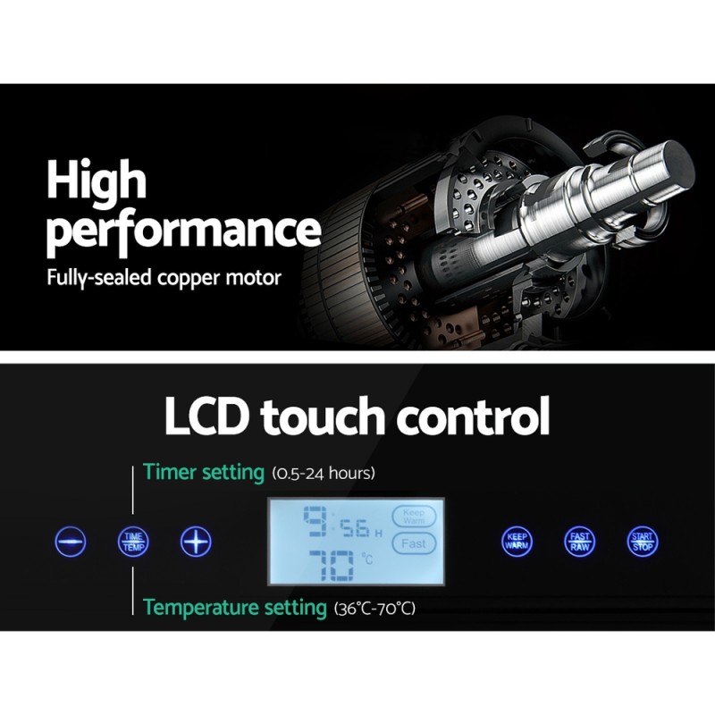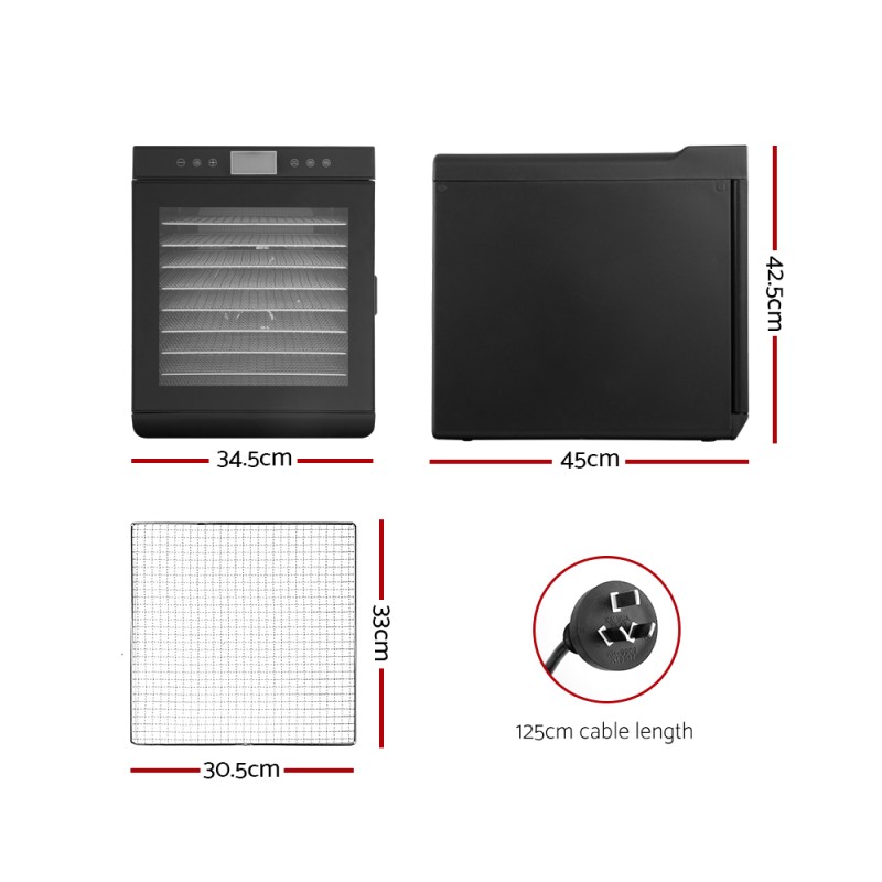 Indulge in the art of healthy snacking with the Devanti 10 Trays Food Dehydrator. Perfect for diet enthusiasts, this dehydrator preserves the vitamins and minerals of fresh foods, enhancing their flavours. Equipped with ten food-grade stainless steel trays, it efficiently dries a variety of foods, from fruits to meats. The user-friendly LCD touch control panel allows precise temperature and timer settings, while the transparent door offers easy monitoring. With overheating protection, dishwasher-safe trays, and a SAA-certified plug, this dehydrator combines safety with convenience for a seamless experience.