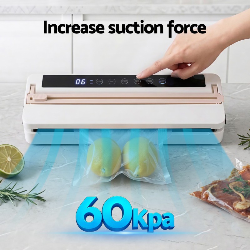 - 110W motor with up to 60KPa suction for strong vacuum sealing