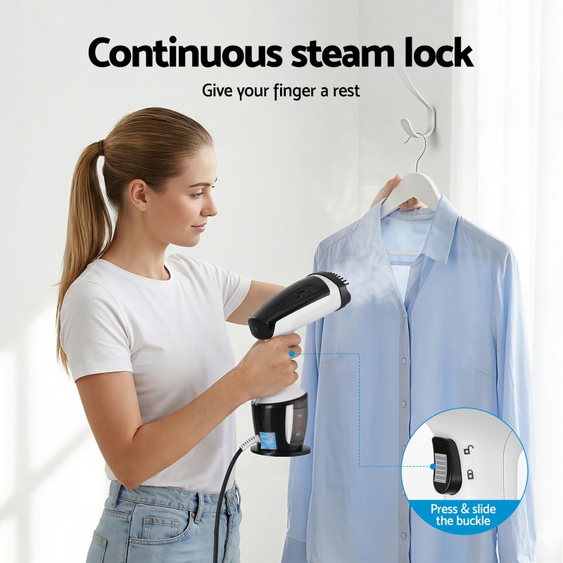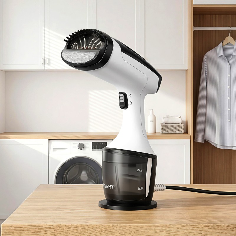 Revitalise your wardrobe with the Devanti 1500W handheld clothes steamer — a compact solution for quick crease removal at home or on the go. With a rapid 30-second heat up and a detachable 160ml water tank this steamer delivers continuous high temperature steam that smooths delicate silks heavy denim and upholstery without an ironing board. The ergonomic upright design and attachable fabric brush make it easy to refresh suits dresses curtains and coats while travelling or between washes.