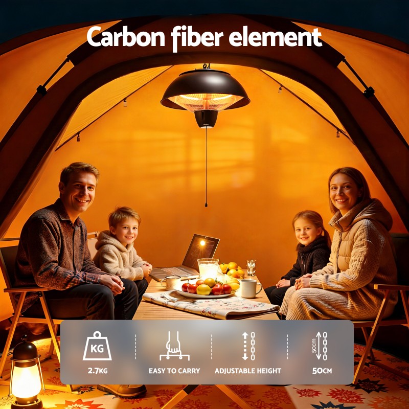 Extend your outdoor season with the Devanti 1500W Hanging Infrared Heater. Designed for Australian 220–240V power, this ceiling mounted unit uses a carbon fibre tube to deliver instant directional warmth to pergolas verandahs balconies and garages. Its IPX4 splash resistant construction and safety features make it suitable for covered outdoor areas. Includes adjustable suspension chain and easy pull cord operation for targeted heating where you need it most.