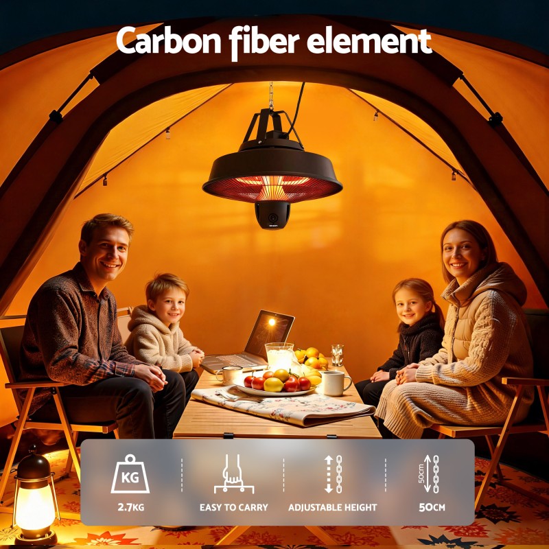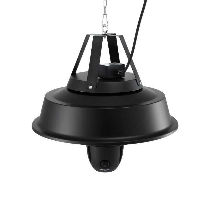 Stay warm indoors or undercover outdoors with the Devanti 2000W ceiling mounted infrared patio heater. Featuring a carbon fibre heating tube, three heat settings (800W 1200W 2000W), adjustable hanging height and a full 360° remote control this compact black heater delivers efficient directional warmth for residential and commercial spaces. Weather resistant design and quiet operation make it ideal for patios alfresco dining and covered terraces.