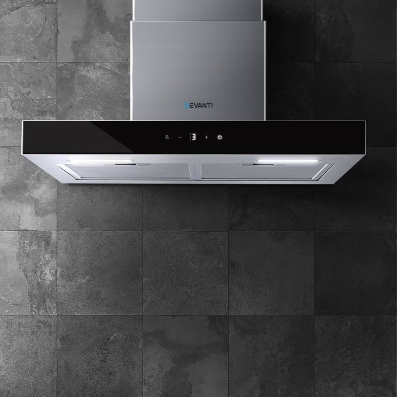 Elevate your kitchen's aesthetic and functionality with the Devanti 600mm Range Hood. Crafted with an elegant black tempered glass finish, this 60cm wall-mounted range hood is designed to efficiently eliminate smoke and cooking odours. Its high-performance motor offers robust suction power, ensuring a clean and fresh cooking environment. Adjust the 3-speed settings using intuitive touch controls, and enjoy well-illuminated cooking with two durable LED lights. The range hood features removable non-stick 5-layer aluminium filters and an adjustable chimney to fit various installation spaces. Experience energy efficiency and seamless operation with a standard Australian plug.