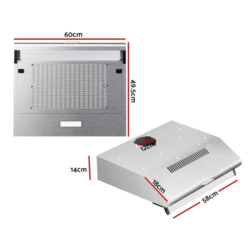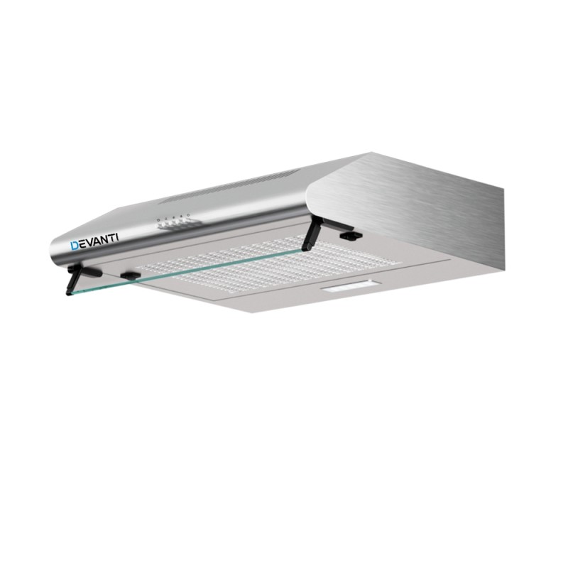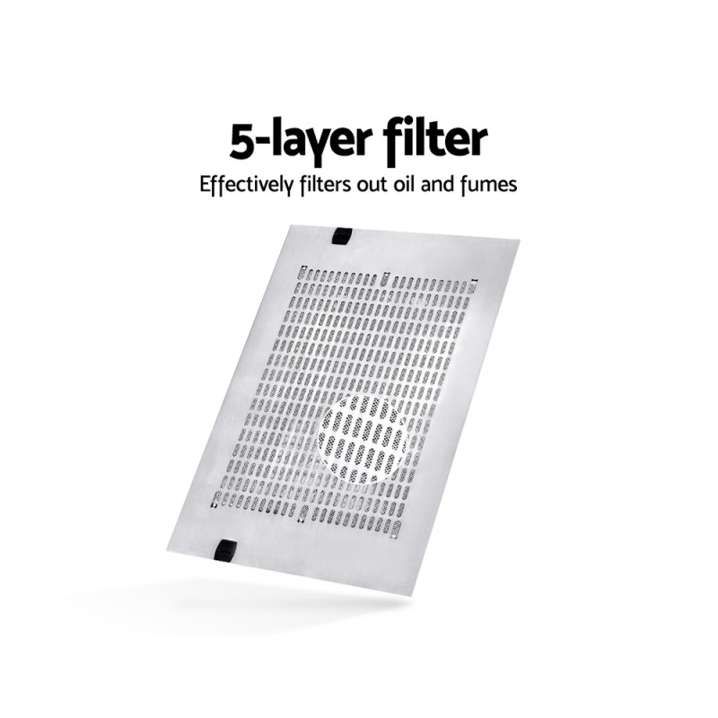 Transform your kitchen experience with the Devanti 600mm Range Hood. Crafted from durable stainless steel with a sleek glass visor, this range hood not only enhances your kitchen's aesthetic but also ensures a smoke-free and odour-free environment. With a robust extraction rate of 180m³/hr powered by a high-performance motor, it efficiently clears smoke, steam, and vapours. The 5-layer aluminium grease filter is non-stick and removable for easy cleaning. Enjoy clear visibility with bright LED lights, while the 3-speed fan, controlled by push buttons, allows you to customise airflow. Easy to install, it supports both ducted and recirculated exhaust modes. A must-have for a fresh and clean kitchen atmosphere.