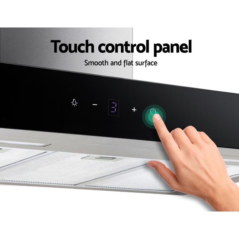 Transform your kitchen into a haven of fresh air with the Devanti 900mm Range Hood. Crafted with elegant black tempered glass and a sleek T-shape wall-mounted design, this range hood is the perfect fusion of style and functionality. Its high-performance motor and strong suction power efficiently eliminate odours and steam, ensuring a clean and comfortable cooking environment. With 3-speed touch controls, two durable LED lights, and energy-saving operation, it's tailored to suit your needs. The 5-layer dishwasher-safe aluminium filters offer easy maintenance, and the adjustable chimney guarantees a perfect fit. Experience quiet, reliable operation with Devanti.