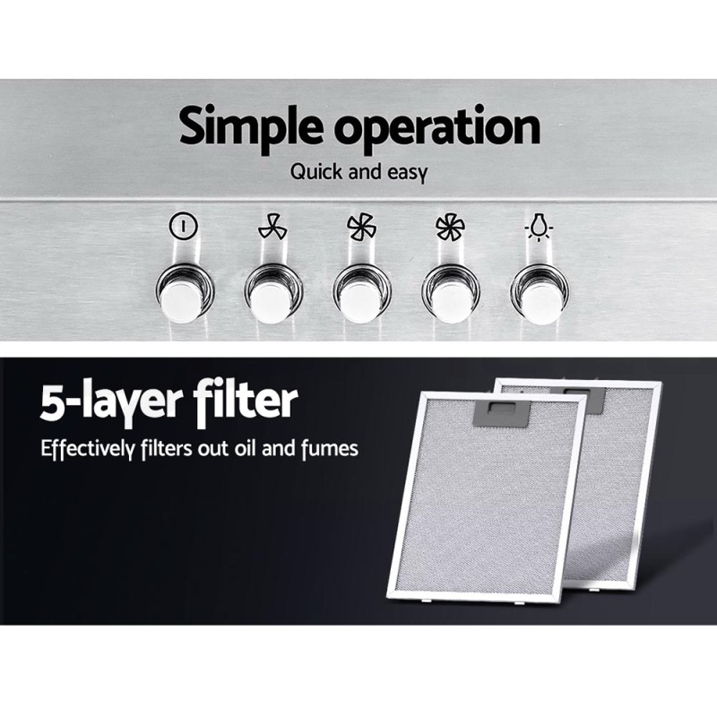 Introducing the Devanti 900mm Range Hood, a sleek and efficient solution for a smoke-free kitchen. Crafted from high-quality brushed stainless steel, this range hood features powerful motors that deliver strong suction, ensuring a clean and fresh cooktop area. With 3-speed rocker button switches, you can easily adjust the extraction speed to meet your needs. Bright LED lighting enhances visibility, while three removable and replaceable non-stick 5-layer aluminium filters ensure optimal performance. Designed for wall mounting, the adjustable chimney fits seamlessly into any space, making it the perfect addition to your kitchen.