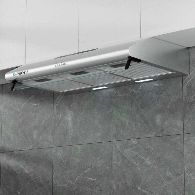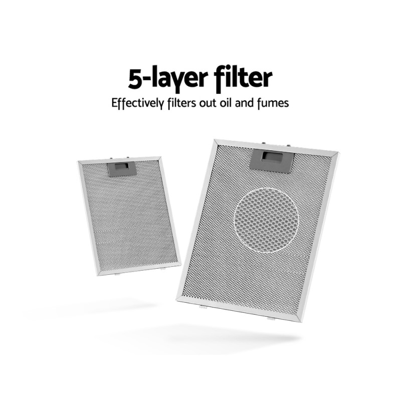 Transform your kitchen experience with the Devanti 90cm Range Hood, designed to tackle stifling odours and stubborn steam effortlessly. Crafted from premium stainless steel with a sleek glass visor, it combines style and functionality for any busy kitchen. Boasting a powerful 180m³/hr extraction rate, it swiftly clears smoke, steam, and odours. The 5-layer aluminium grease filter is non-stick and removable for easy cleaning. Illuminate your cooking space with bright LED lights and enjoy the convenience of a 3-speed fan controlled by simple push buttons. This range hood is easy to install, compatible with 12cm exhaust tubes, and offers ducted or recirculated modes. Experience fresh, clean air every time you cook with Devanti.