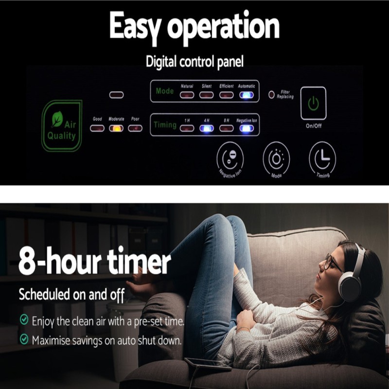 Do not let hay fever get you down this season. Breathe easy with the Devanti Air Purifier, offering cleaner, healthier air through a 4-stage HEPA filtration system that captures 99.97% of allergens and particles as small as 0.3 microns. With a built-in ioniser, air quality sensor, and four modes, including Automatic and Silent, it ensures optimal air quality at all times. The digital control panel and remote control provide convenience, while its compact design fits seamlessly into any room.