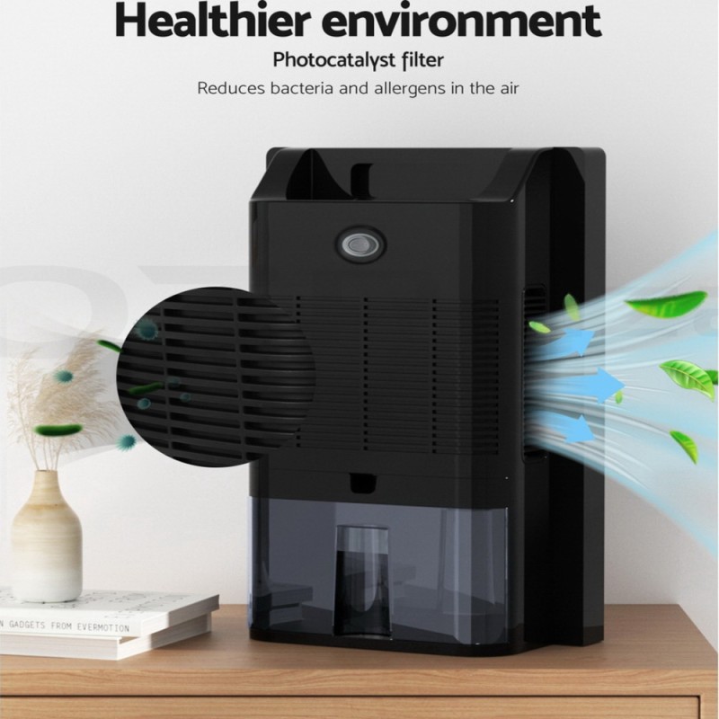Transform your home environment with the Devanti Dehumidifier 2L Air Purifier in sleek black. Combat moisture issues like mould and condensation while purifying the air with a photocatalyst filter. Enjoy whisper-quiet operation, smart control, and a 24-hour timer for effortless use. With a 2L tank and dual drainage options, it's perfect for spaces up to 30m². Lightweight and portable, it’s your ultimate solution for a fresher, drier home. Includes a 1-year warranty for peace of mind.
