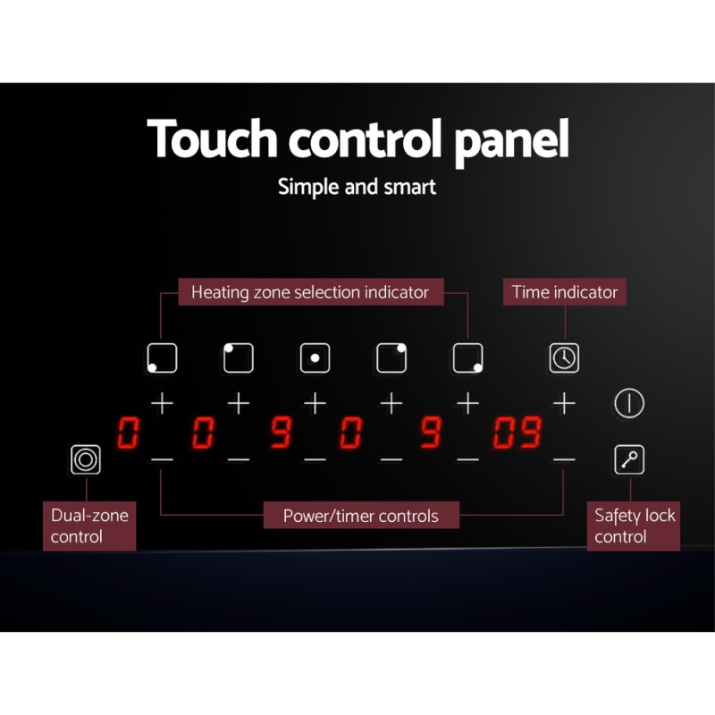 Upgrade your kitchen with the Devanti Electric Ceramic Cooktop 90cm, designed for effortless cooking. Featuring six cooking zones, touch controls, and a sleek black ceramic glass plate, this cooktop offers nine power levels for precision. Safety is paramount with overheat protection, a child lock, and automatic switch-off. Enjoy easy cleaning and peace of mind with a residual heat indicator. Perfect for any modern kitchen, this cooktop combines power, safety, and style.