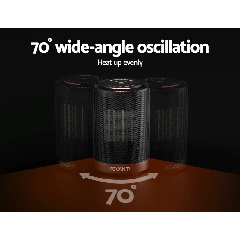 Stay cosy this winter with the Devanti Electric Fan Heater 1200W. Featuring a rapid PTC heating system and fan, it offers two heat settings and three modes (cool, warm, hot) for optimal comfort. Its 70-degree oscillation ensures even heat distribution, while the compact design fits any space. The LED thermostat and 9-hour timer with auto shut-off enhance convenience and energy efficiency. Safety is paramount with a cut-off switch and overheat protection. Enjoy warmth with peace of mind, backed by a 1-year warranty.