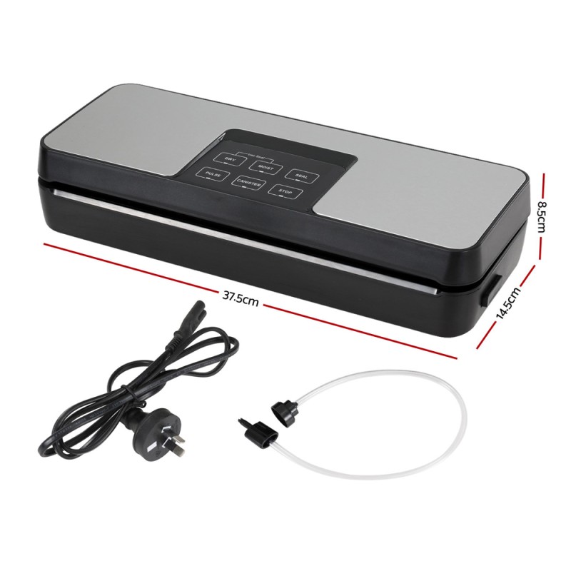 Keep food fresher for longer with the Devanti Food Vacuum Sealer Machine. Powered by 110W and 80kpa suction, it creates a perfect airtight seal to prevent leaks and spoilage. Effortlessly operate with smart touch controls and choose from five modes for wet, dry, canister, or normal sealing. The built-in slide cutter ensures quick bag prep, while its compact, portable design suits any kitchen. Easy to clean and perfect for both home and commercial use, this sealer comes complete with 10 bags and a vacuum tube for canisters.