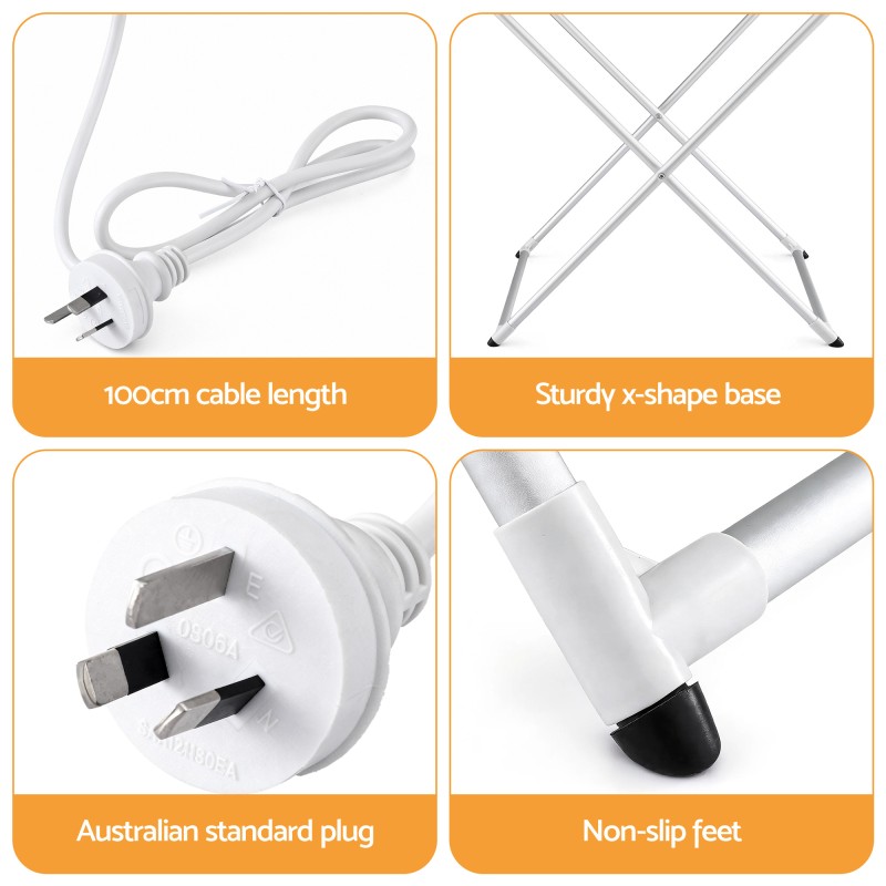 Revolutionise your laundry routine with the Devanti Heated Towel Rail Electric Clothes Airer. Perfect for compact living, this 120W powerhouse features 8 heated bars encased in a lightweight, rust-proof aluminium frame. Its smart foldable design ensures easy storage and portability, making it ideal for bathrooms, bedrooms, or laundry rooms. With a constant temperature range of 40-55°C, it gently dries delicate fabrics while offering plug-and-play convenience. Say goodbye to lengthy drying times and hello to the perfect drying solution for small spaces.