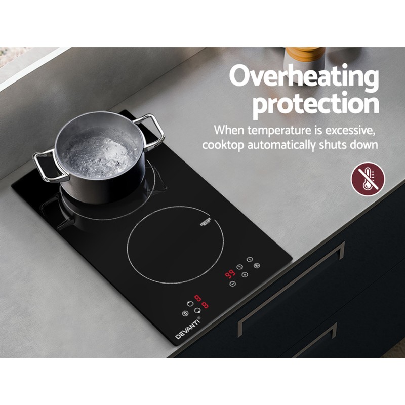 The Devanti 30cm Induction Cooktop is a must-have for effortless, stylish cooking in any kitchen. With two high-wattage zones, touch controls, and a sleek black ceramic glass plate, it offers nine power levels for precision cooking. Safety is paramount with features like a child lock, residual heat indicator, and automatic shut-off. Easy to clean and operate, this cooktop ensures hassle-free cooking. Note: Installation by a licenced electrician is required. Comes with a 2-year warranty.
