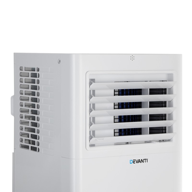Stay cool and comfortable all summer with the Devanti Portable Air Conditioner. Perfect for rooms 10 - 15m², this 3-in-1 unit functions as an air conditioner, 2-speed fan, and dehumidifier. Featuring MIST Evaporative Technology for hassle-free use, it operates quietly and efficiently. Enjoy easy control via the smart LCD and remote, plus portability with built-in handles and castors. Simple installation with an included window exhaust kit and removable mesh filter for easy cleaning. 1-year warranty included.