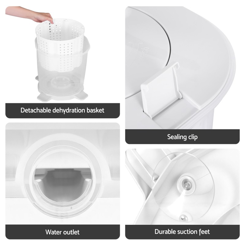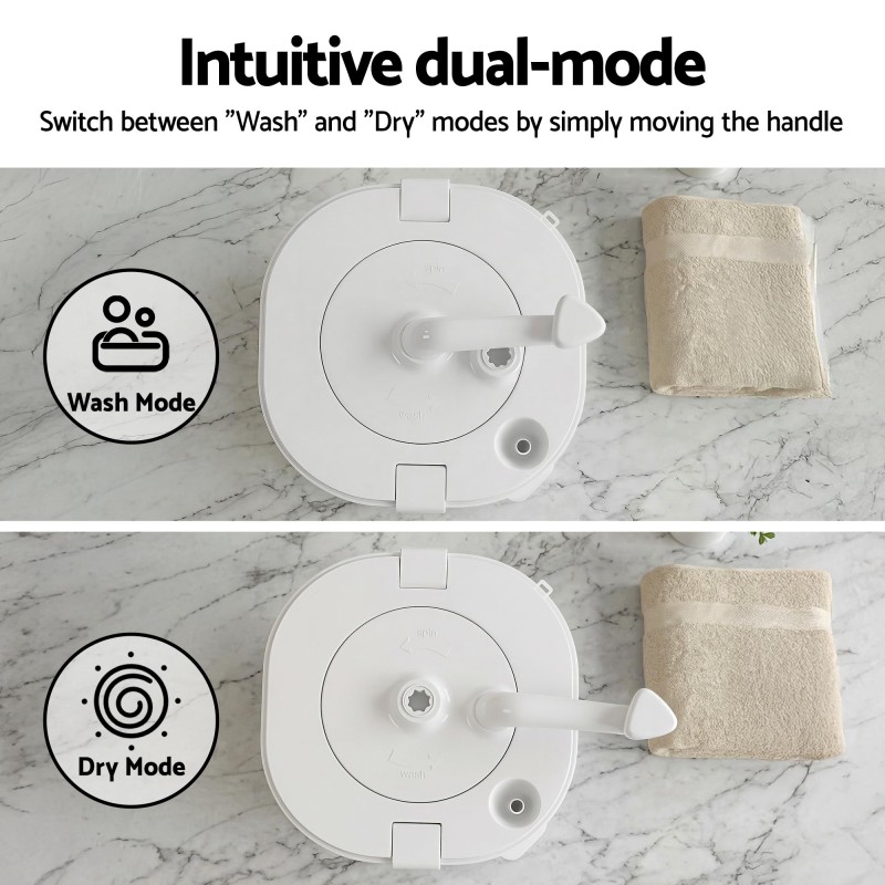 The Devanti Portable Washing Machine is a compact manual laundry solution ideal for caravans camping and small apartments. With a 2.5kg wet capacity and a built-in manual spin dryer this 10L unit removes excess water from small loads without electricity. Lightweight and easy to use the unit includes inlet and outlet pipes plus a plug so you can start washing straight away. Its space-saving design and durable ABS PP construction make it a practical choice for travel and tight living spaces.