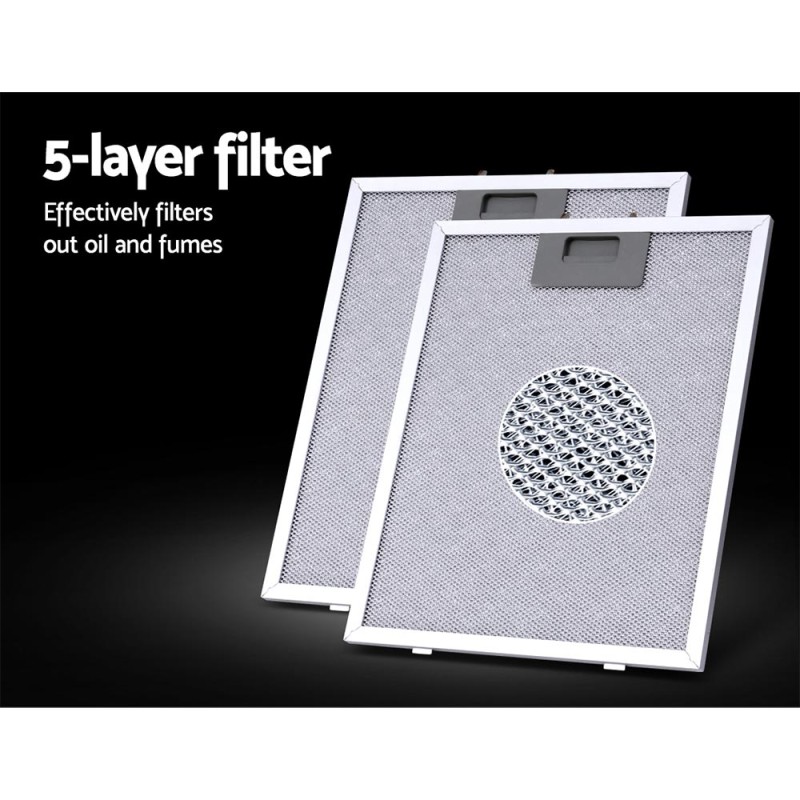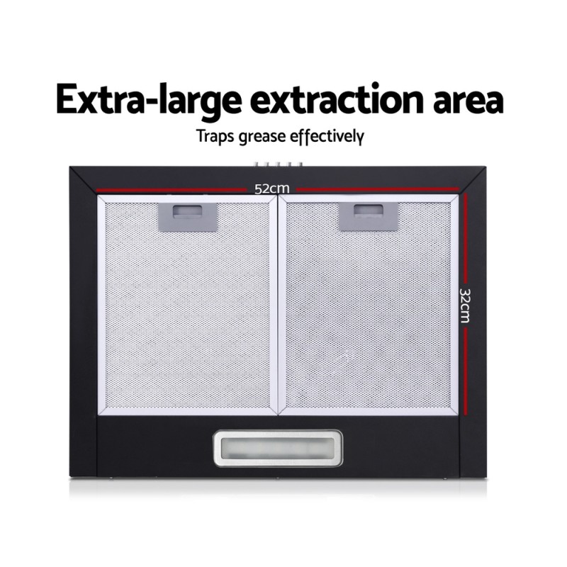 Transform your kitchen with the Devanti 600mm Range Hood, designed to eliminate smoky fumes and cooking odours effortlessly. Crafted from black powder-coated steel, it features a high-performance motor and adjustable 3-speed rocker button switches for optimal extraction. Equipped with two removable 5-layer aluminium filters and a bright 1.5W LED lamp, this wall-mounted hood ensures a clean, illuminated cooking space. Its adjustable chimney and sleek design make it a perfect fit for any modern kitchen.