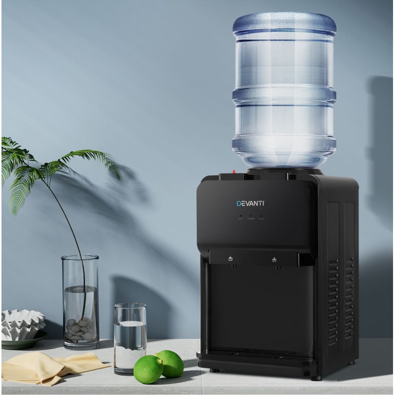 Experience the ultimate convenience with the Devanti Water Cooler Dispenser. Perfect for any desktop or kitchen bench, this sleek black cooler offers instant access to both hot and cold water. With its efficient compressor cooling technology, enjoy cold water in just 20 minutes or a steaming hot drink in 10 minutes. Safety features include a child-lock and multiple protections against overheating and electric shocks. Its user-friendly design boasts dual taps, a removable drip tray, and anti-slip feet, ensuring a seamless water dispensing experience.