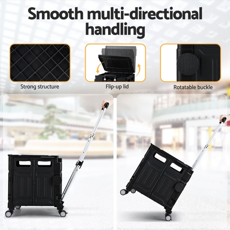 Make shopping effortless with the Emajin Foldable Shopping Trolley Cart. Crafted from durable PP plastic and featuring a lightweight aluminium alloy handle, this 75L trolley is water and wear-resistant, perfect for all weather conditions. Its 360° swivel wheels and wheel brakes offer smooth manoeuvrability, while the sturdy design supports up to 70kg of groceries. Six in-built carry handles allow easy lifting, and the foldable frame ensures convenient storage in cupboards, garages, or cars. Clean-up is simple, making your weekly shop comfortable and hassle-free.