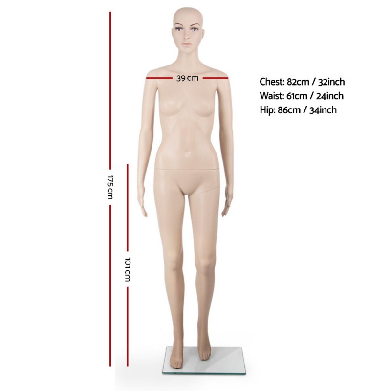 Introducing the '175cm Tall Full Body Female Mannequin' by Embellir, a premium choice for retailers looking to elevate their fashion displays. Crafted from durable PP material, this skin-coloured mannequin offers an elegant and realistic presentation of clothing and accessories. Its adjustable arms and head allow for versatile posing, enhancing the visual appeal of your merchandise. The mannequin stands securely on a polished-edge glass base, supported by a robust aluminium calf spigot, ensuring stability and safety. Ideal for budget-conscious retailers, this mannequin combines durability with fine finishing for a professional display solution.