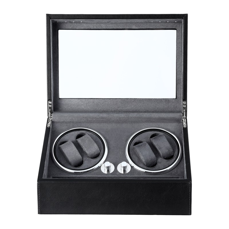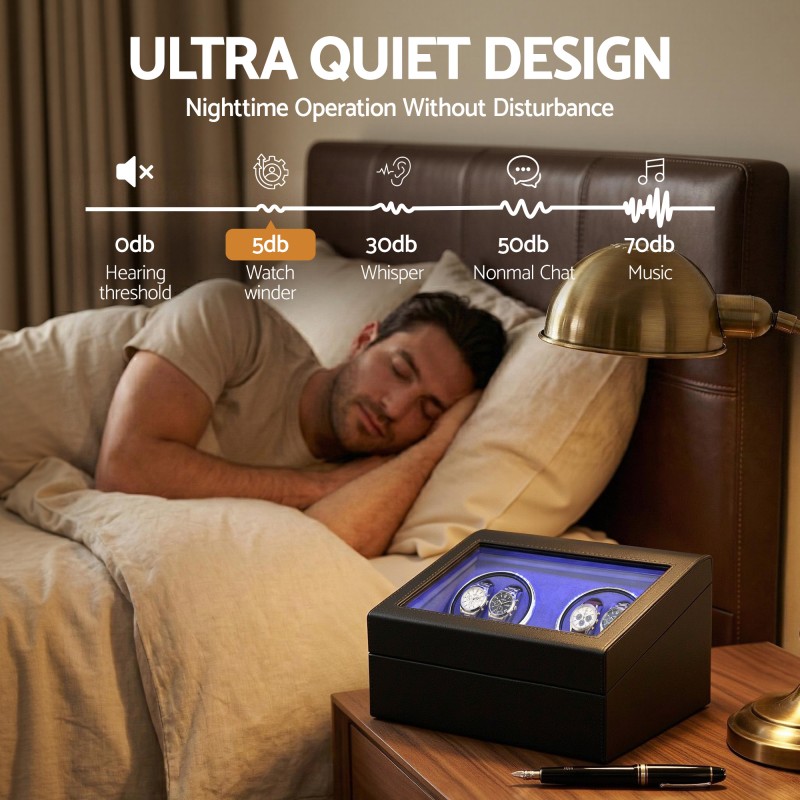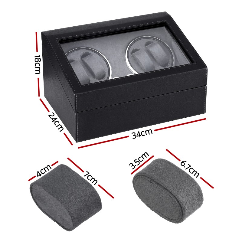 Introducing the Embellir Watch Winder Automatic Double Watch Winder Box, a sophisticated solution for keeping your automatic watches in perfect time and style. Designed with dual independent rotation, this watch winder offers multiple winding modes to cater to your specific needs. Enjoy ultra-quiet operation, ensuring no disturbance in your serene environment. The elegant black faux leather finish, complemented by LED lighting and a soft interior lining, adds a touch of luxury while protecting your valued timepieces. The open lid stop design enhances accessibility, making it a convenient choice for everyday use. Power it with AC or batteries for versatile placement.