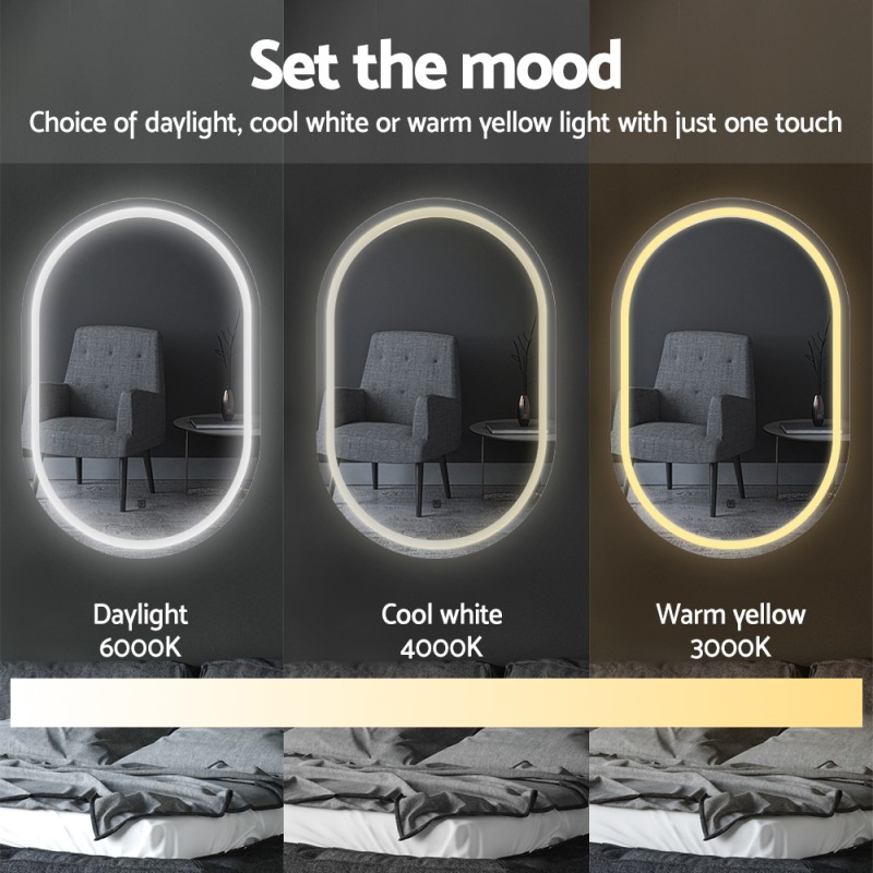 Turn your bathroom into a celebrity dressing room with the Embellir 2 LED Wall Mirror. Measuring 50x75cm, this oval vanity mirror features a stunning frosted edge and an energy-efficient LED light strip with three adjustable colour temperatures (3000K, 4000K, 6000K) for perfect makeup lighting. The smart touch controls, antifog function, and waterproof design add modern convenience. Strong, stylish, and SAA-certified, Embellir helps you achieve flawless looks every day. Includes a 1-year warranty.