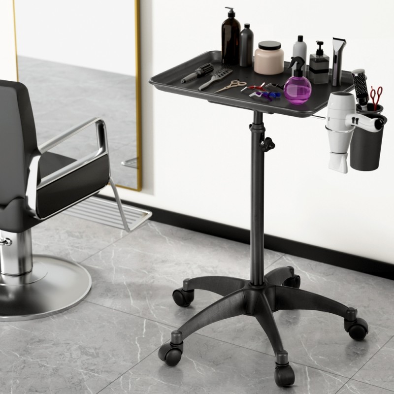 Introducing the Embellir Salon Trolley Cart, a sleek and stylish solution for beauty and hairdressing salons. Designed for effortless mobility with its five-wheel system, this trolley features adjustable height and a durable aluminium tray, making it perfect for organizing your professional space. With side holders for bottles and a hairdryer, it combines convenience and efficiency. Elevate your salon's functionality with this essential tool, backed by a 1-year warranty.