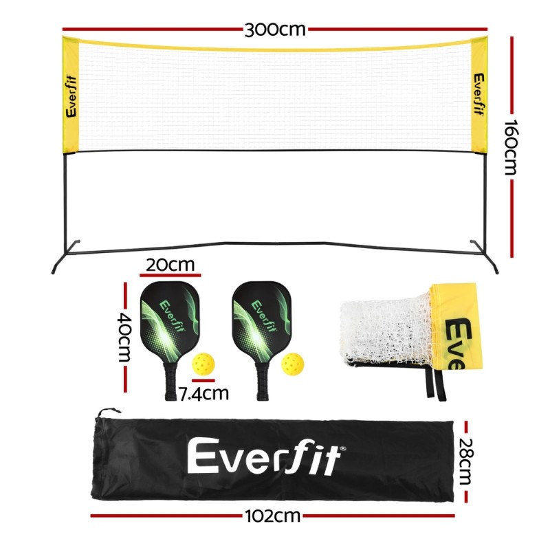 Transform any outdoor space into a versatile sports arena with the Everfit 10ft Portable Pickle Ball Net. Perfect for active families and casual players, this multi-sport net is designed for pickleball, badminton, tennis, and volleyball. Its sturdy iron frame and cross-brace supports ensure durability, while the professional-grade 210D Oxford net maintains tension. The telescopic poles offer tool-free height adjustments from 90-160cm, catering to different sports. Lightweight at 3.48kg, it features a quick 10-minute assembly and packs into an easy-carry duffle for convenience. Enjoy long-term outdoor use with its UV-resistant Tetoron mesh.