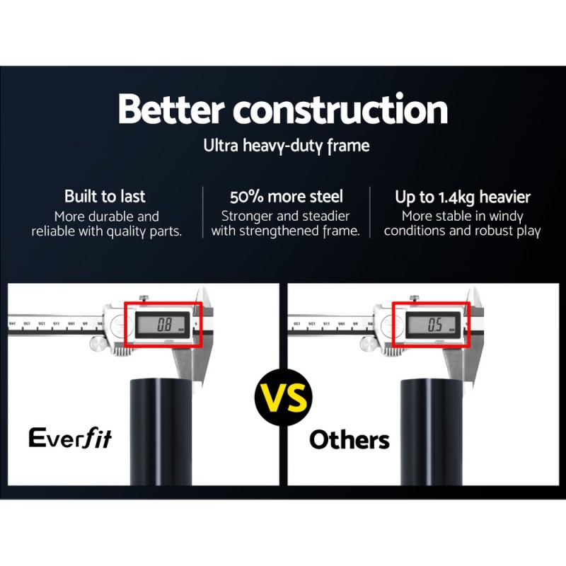 Unleash your inner football star with the Everfit 2.4m Portable Football Soccer Net. Designed for enthusiasts of the beautiful game, this portable goal is a breeze to set up, featuring a robust powder-coated steel frame that's 50% stronger for enhanced durability. Its high-density PE net is perfect for practising free kicks and penalty kicks, while the four ground stakes ensure stability during intense play. Lightweight and easy to transport with the included carry bag, it's ideal for spontaneous games on any flat surface. Transform any open space into a pitch and enjoy the thrill of soccer wherever you go.