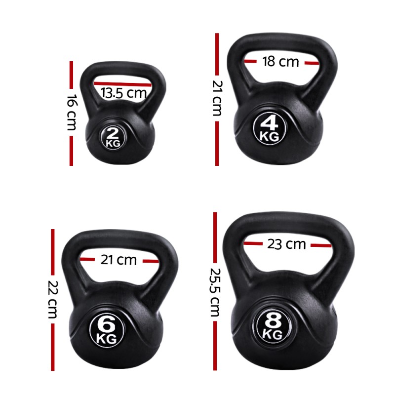 - Kettlebell weights: 2kg / 4kg / 6kg / 8kg